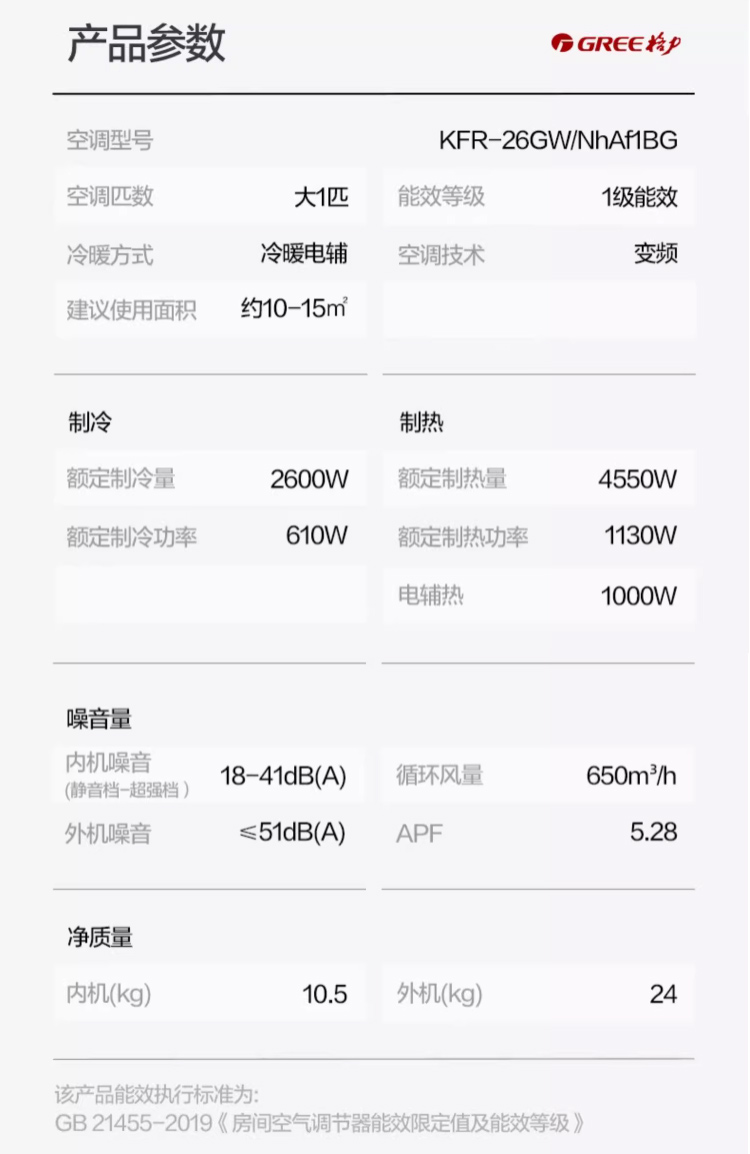 空調(diào)品牌:Gree/格力格力空調(diào)型號:KFR-26GW/NhAf1BG空調(diào)功率:大1匹