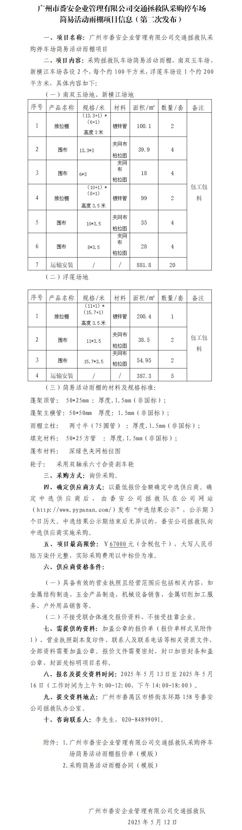附件1 廣州市番安企業管理有限公司交通拯救隊采購停車場簡易活動雨棚報價單(模版).xls