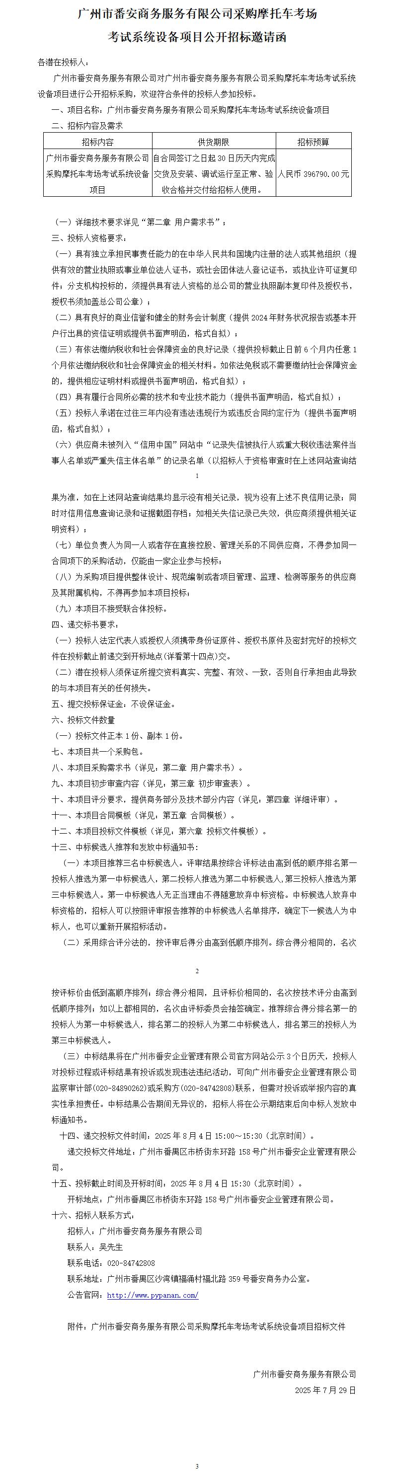 附件:廣州市番安商務服務有限公司采購摩托車考場考試系統設備項目招標文件.doc