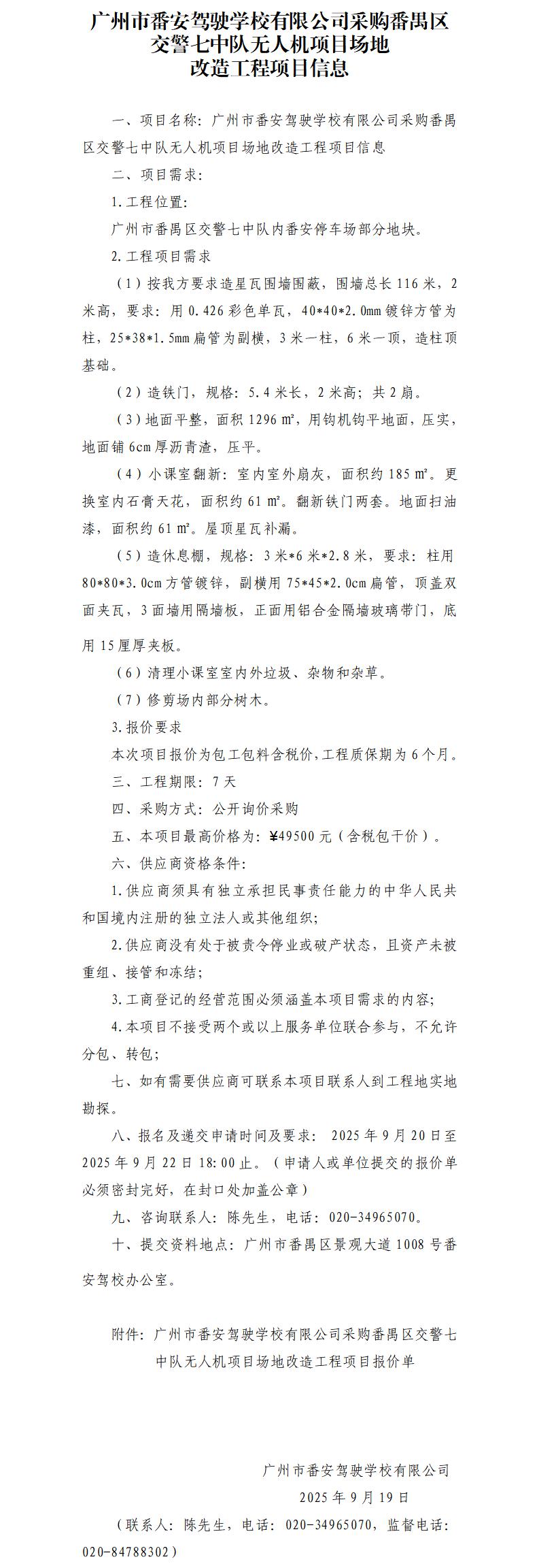 附件:廣州市番安駕駛學校有限公司采購番禺區交警七中隊無人機項目場地改造工程項目報價單.xls