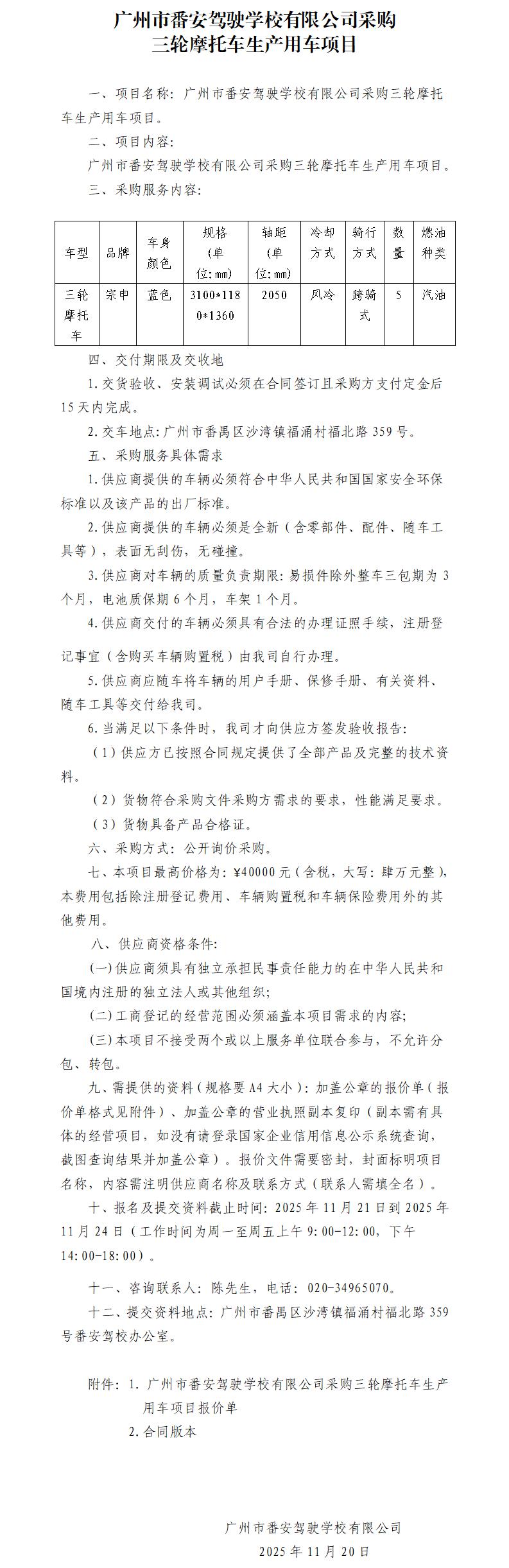 廣州市番安駕駛學校有限公司采購三輪摩托車生產用車項目報價單.xls