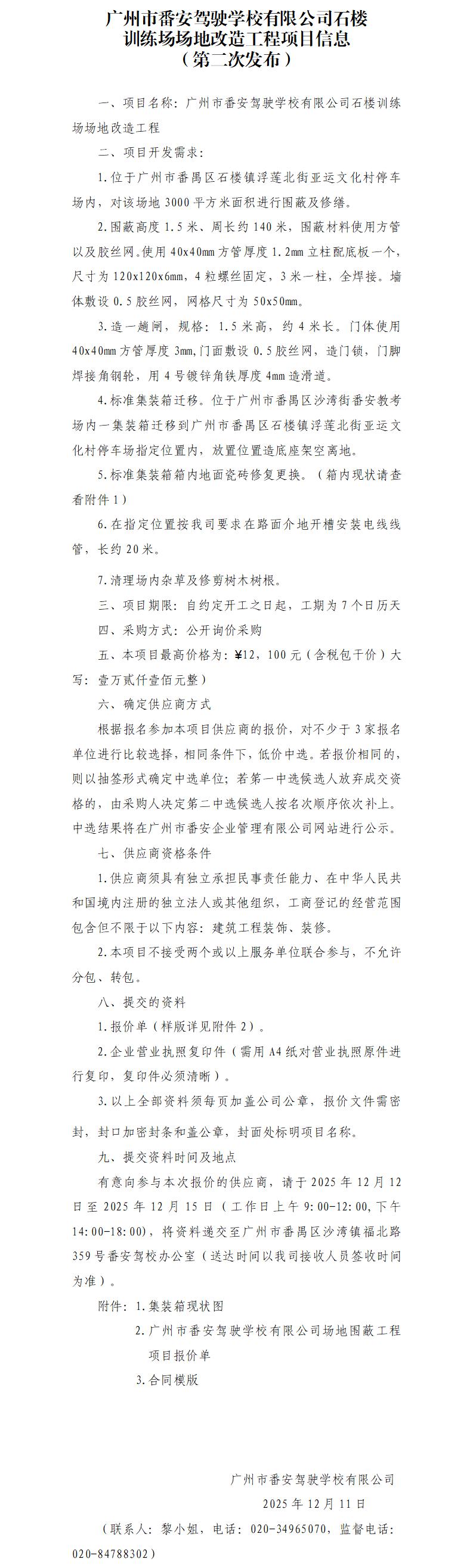 附件2:廣州市番安駕駛學校有限公司石樓訓練場場地改造工程項目報價單.xls