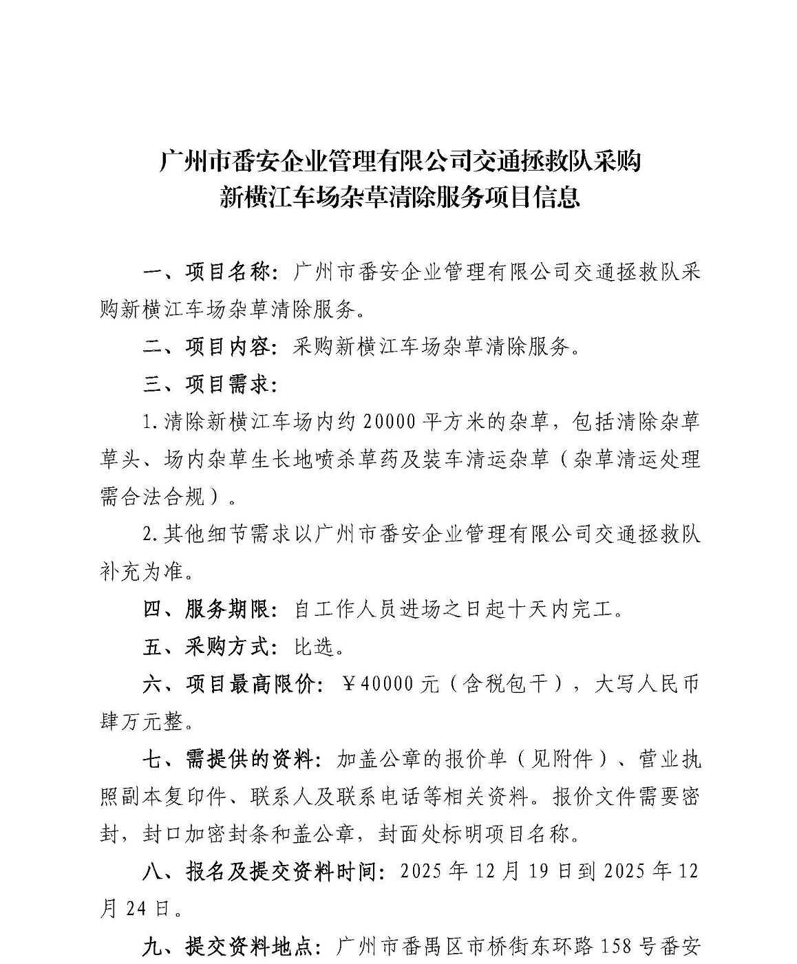 附件:廣州市番安企業(yè)管理有限公司交通拯救隊(duì)采購新橫江車場雜草清除服務(wù)報(bào)價單.xls
